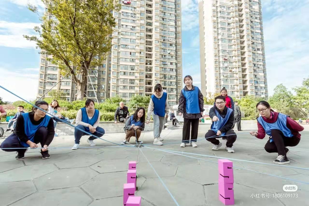 ??多人建塔:成員手拉繩子,通過配合協(xié)作??使在地下放置的不規(guī)則的木頭依次按照順序累計(jì)一定高度,運(yùn)送過程中??止掉落。